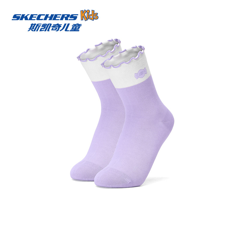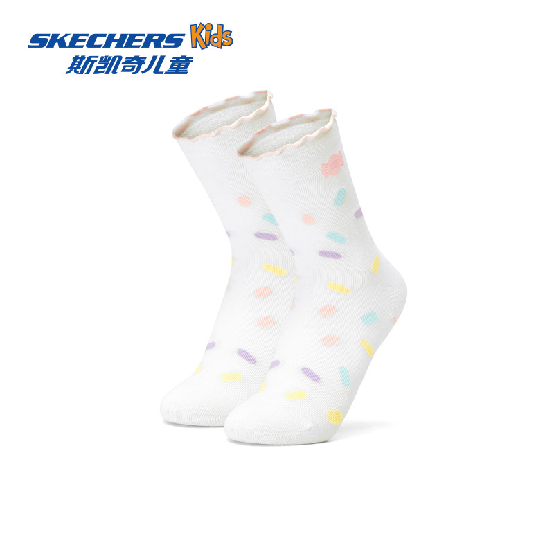 Skechers斯凯奇儿童袜子柔软舒适透气女童袜子时尚多彩中筒袜子