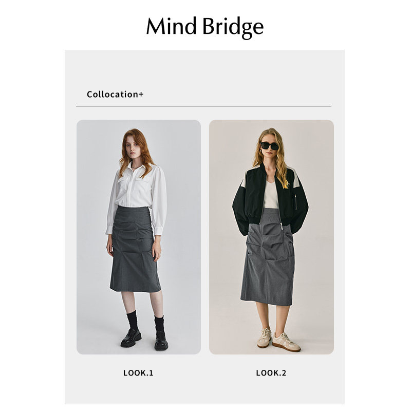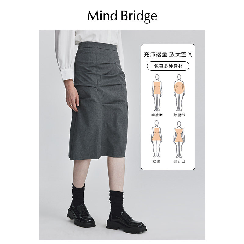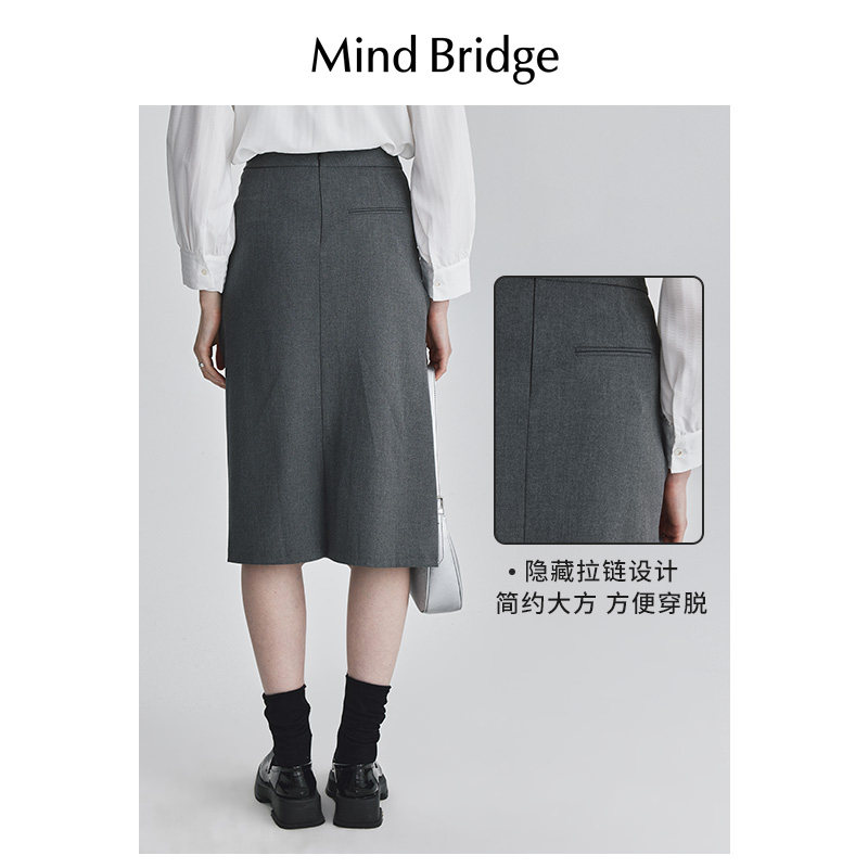 MB MindBridge春季直筒半身裙2026新款设计感裙子女士中长款裙子