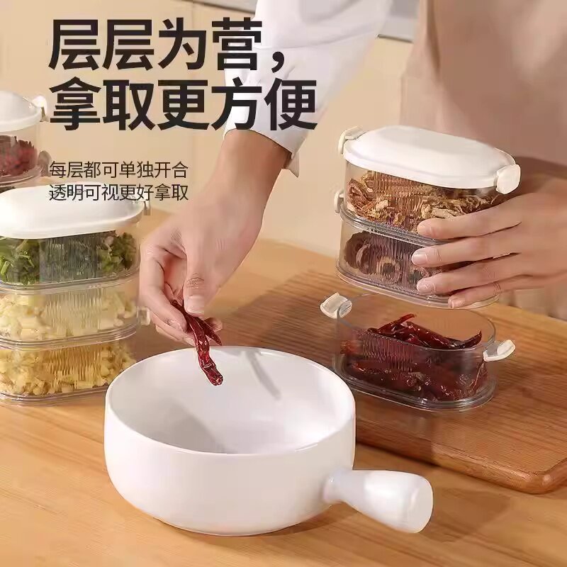 热销叠加式香料收纳盒 食品级密封防潮调料罐省空间厨房储物罐