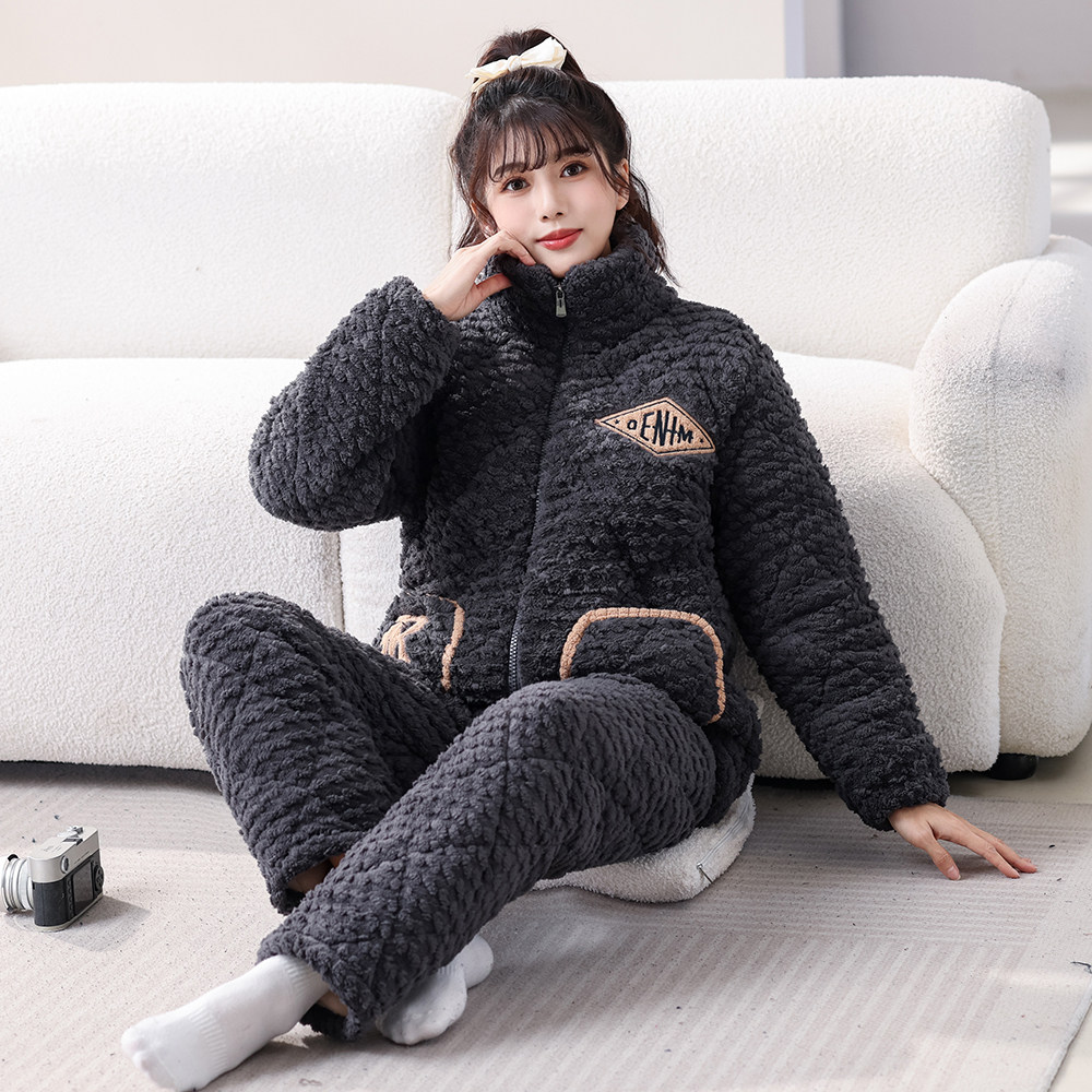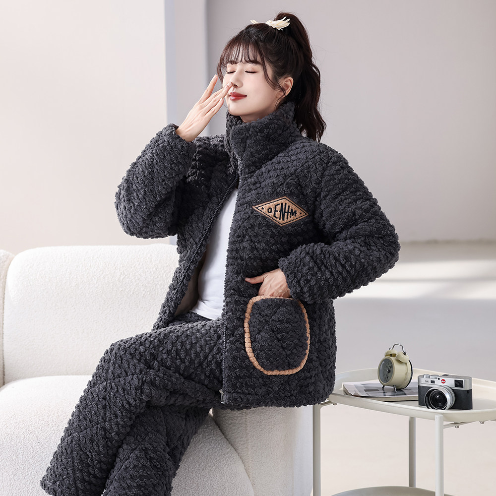 冬季珊瑚绒男士睡衣三层夹棉加厚加绒法兰绒秋冬款家居服保暖套装