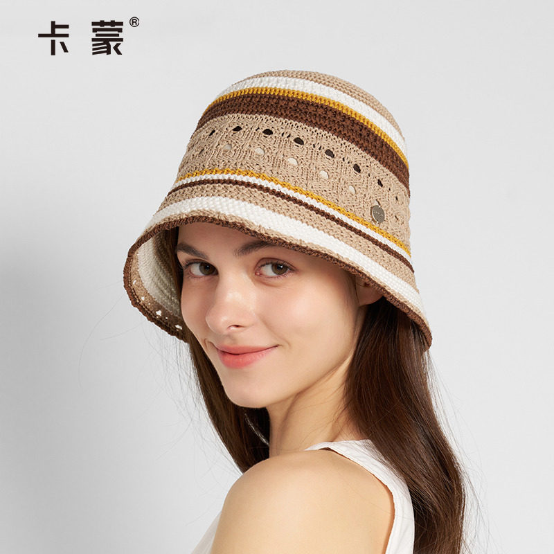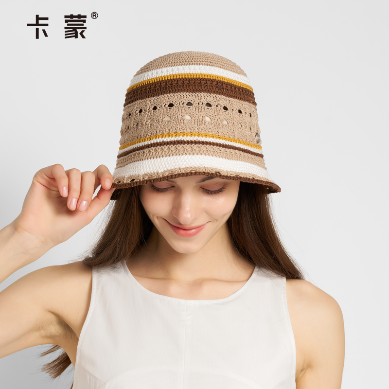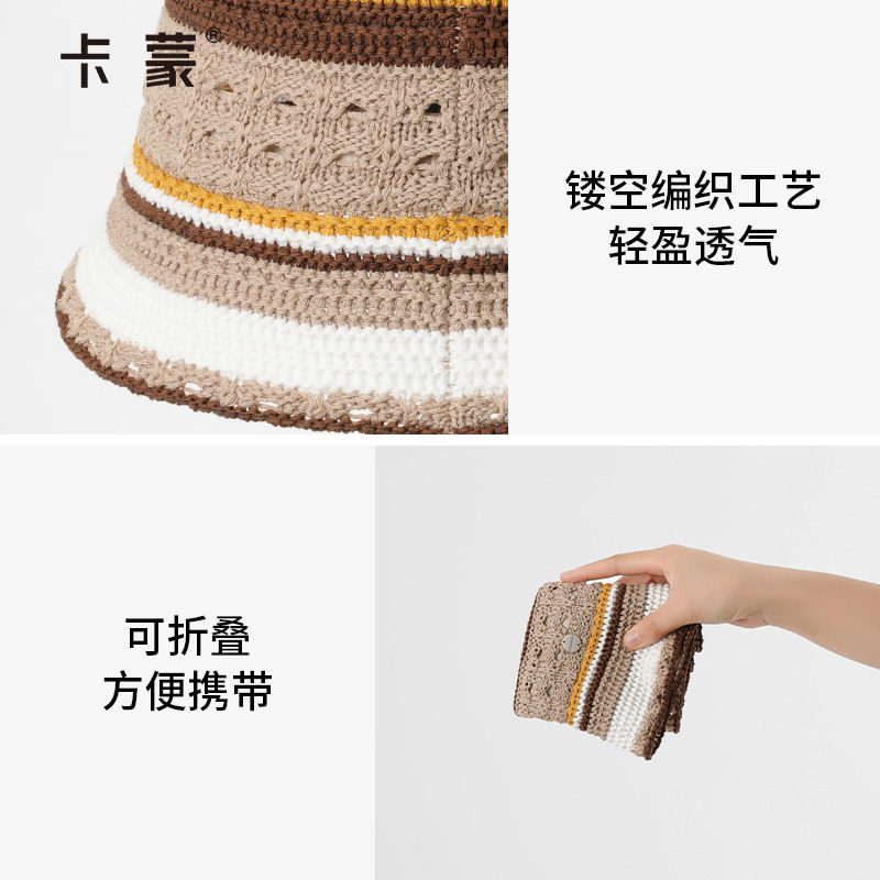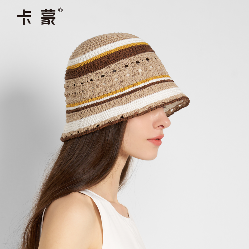 卡蒙编织镂空渔夫帽透气百搭钟型水桶帽夏季休闲度假太阳帽女新款