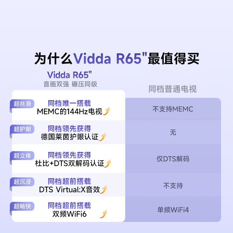 Vidda 海信电视R65 65英寸4K144hz高刷家用挂墙平板电视机