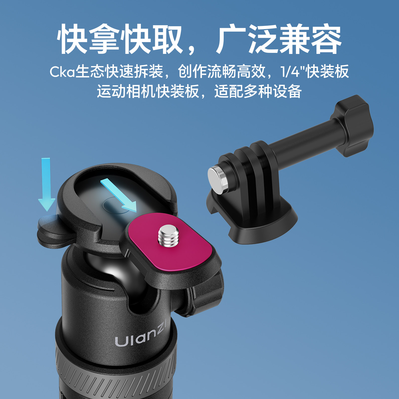 Ulanzi优篮子 TT24 Cka快装丢丢杆自拍杆适用大疆pocket3/action6/5/4/nano运动相机支架便携延长杆三脚架