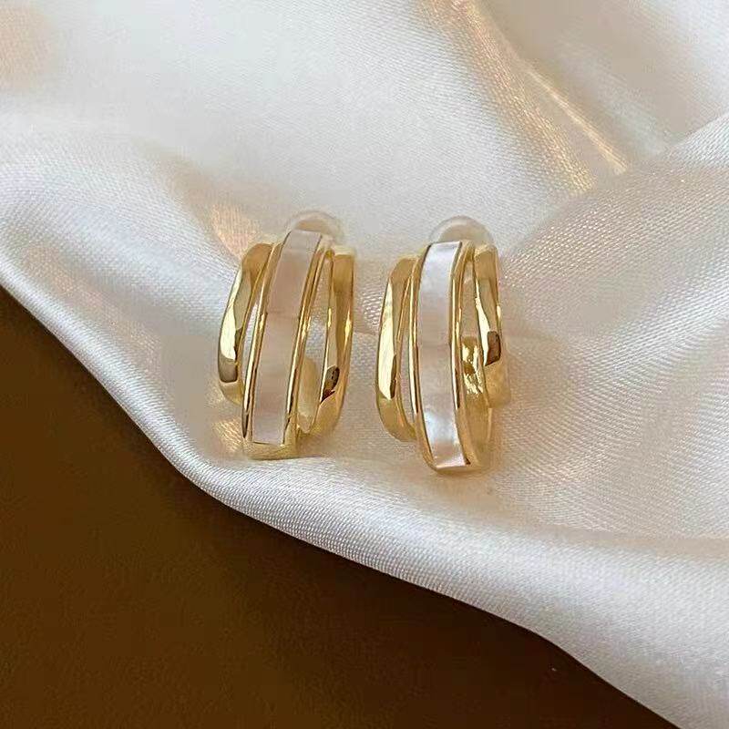 金色拉丝几何耳环2025新款爆款高级感轻奢小众气质耳扣女秋冬耳饰