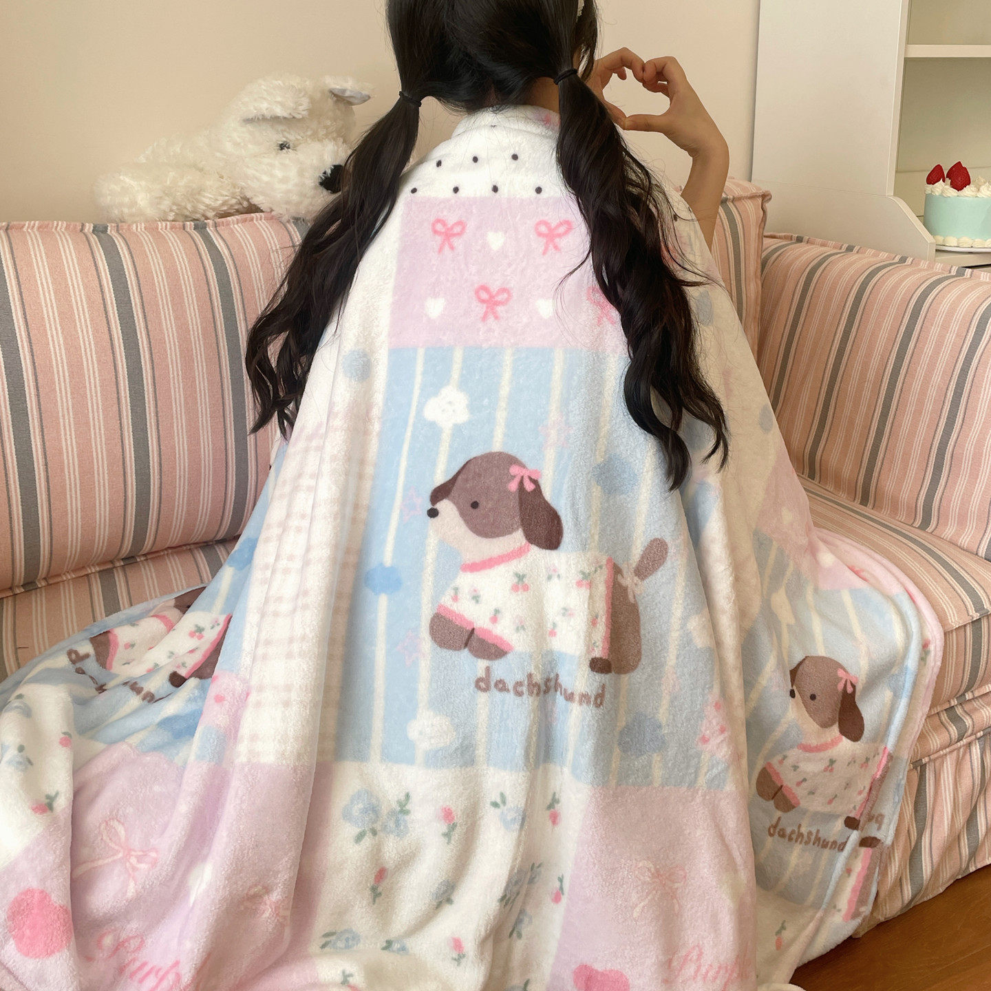卡哇伊~柔软牛奶绒双面绒毛毯盖毯办公室午休毯学生披肩卡通少女