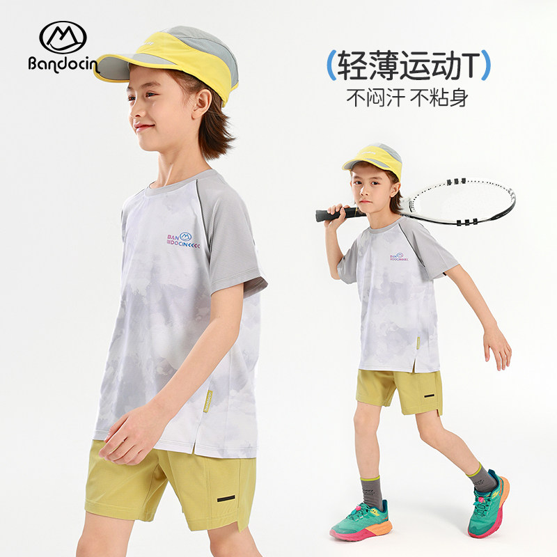 半度闲男童运动速干衣夏季薄款洋气25新款儿童夏装弹力短袖上衣潮