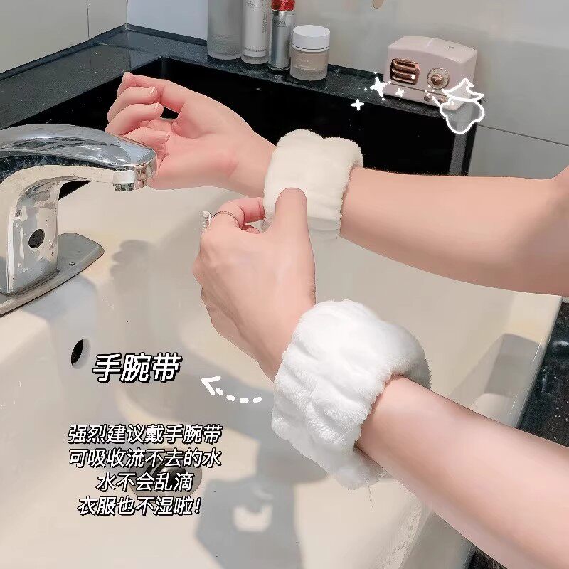 洗脸防水手腕带防湿神器女2025款毛绒手圈吸水束发带女头饰洗漱