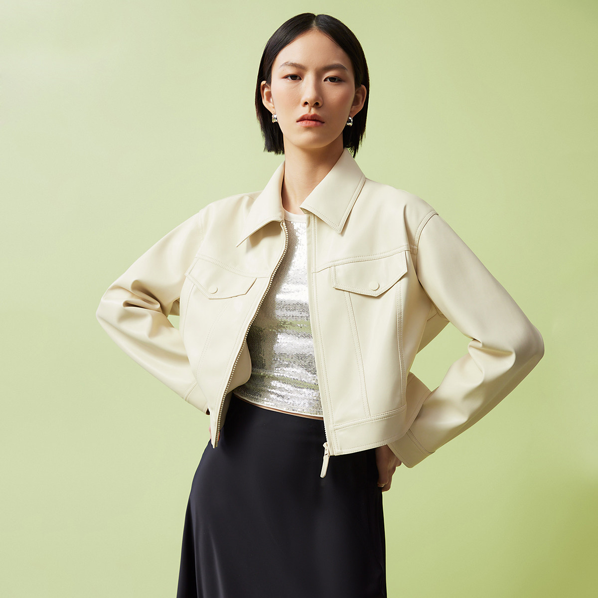 Vero Moda外套女2025秋季新款城市游牧风PU短款长袖上衣325317022