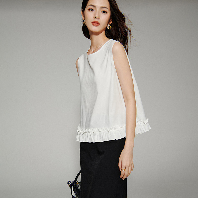 晚白2026年春新款简约圆领韩系亚麻上衣亲肤透气轻薄无袖衬衫女