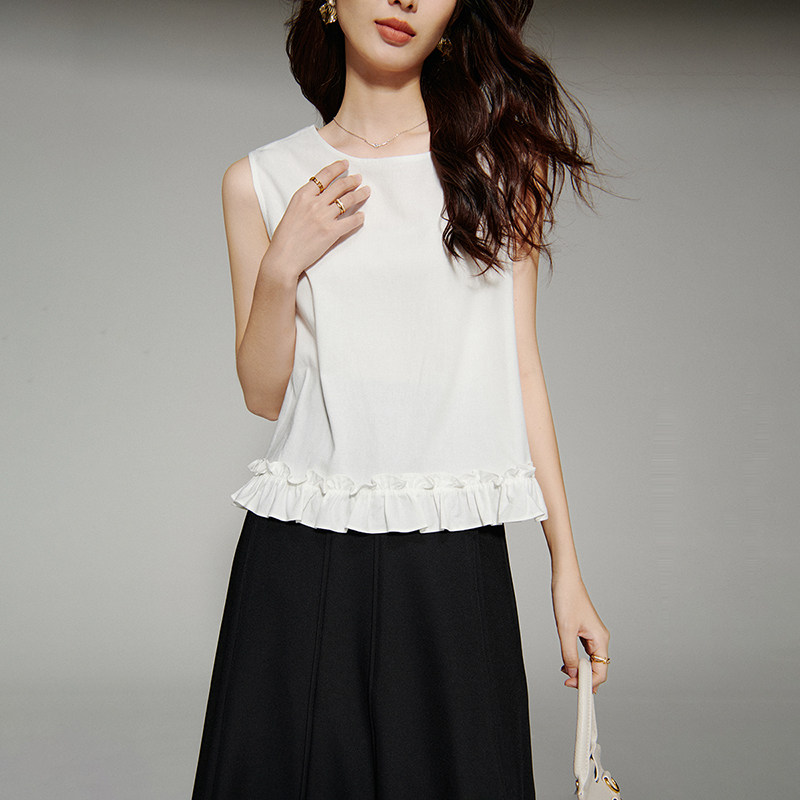 大洪官方【叠穿神器】内搭荷叶领无袖衬衫背心显瘦百搭打底衫衬衣