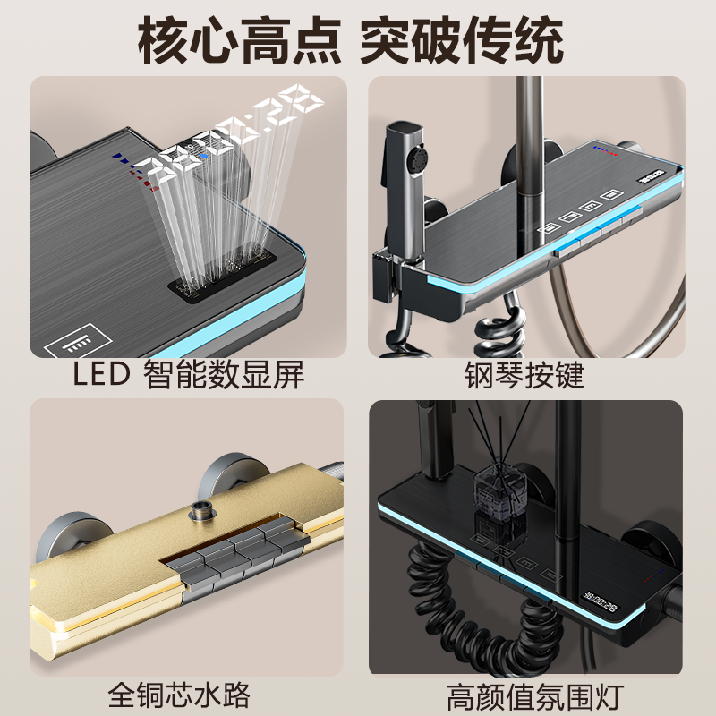 枪灰色淋浴花洒套装全铜家用浴室恒温增压卫生间冷热沐浴套装冷热