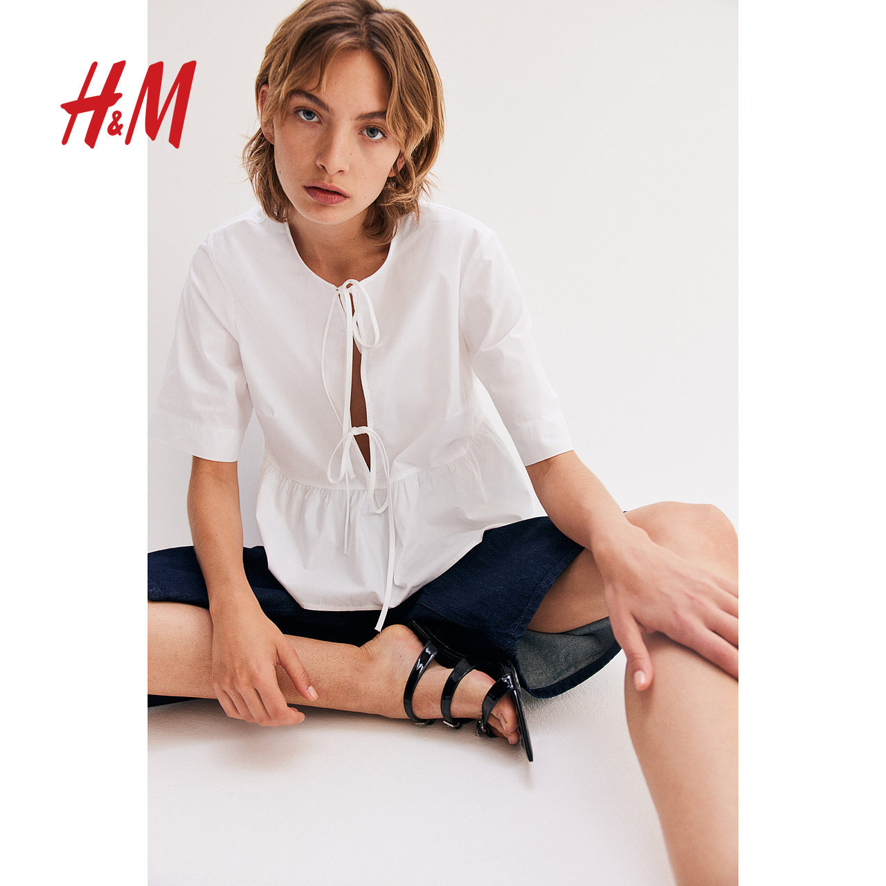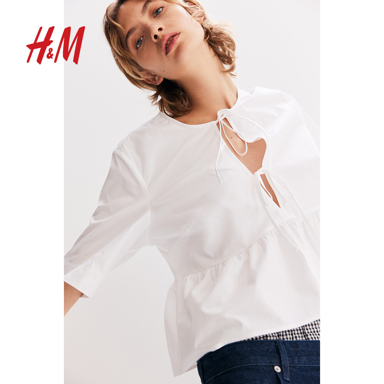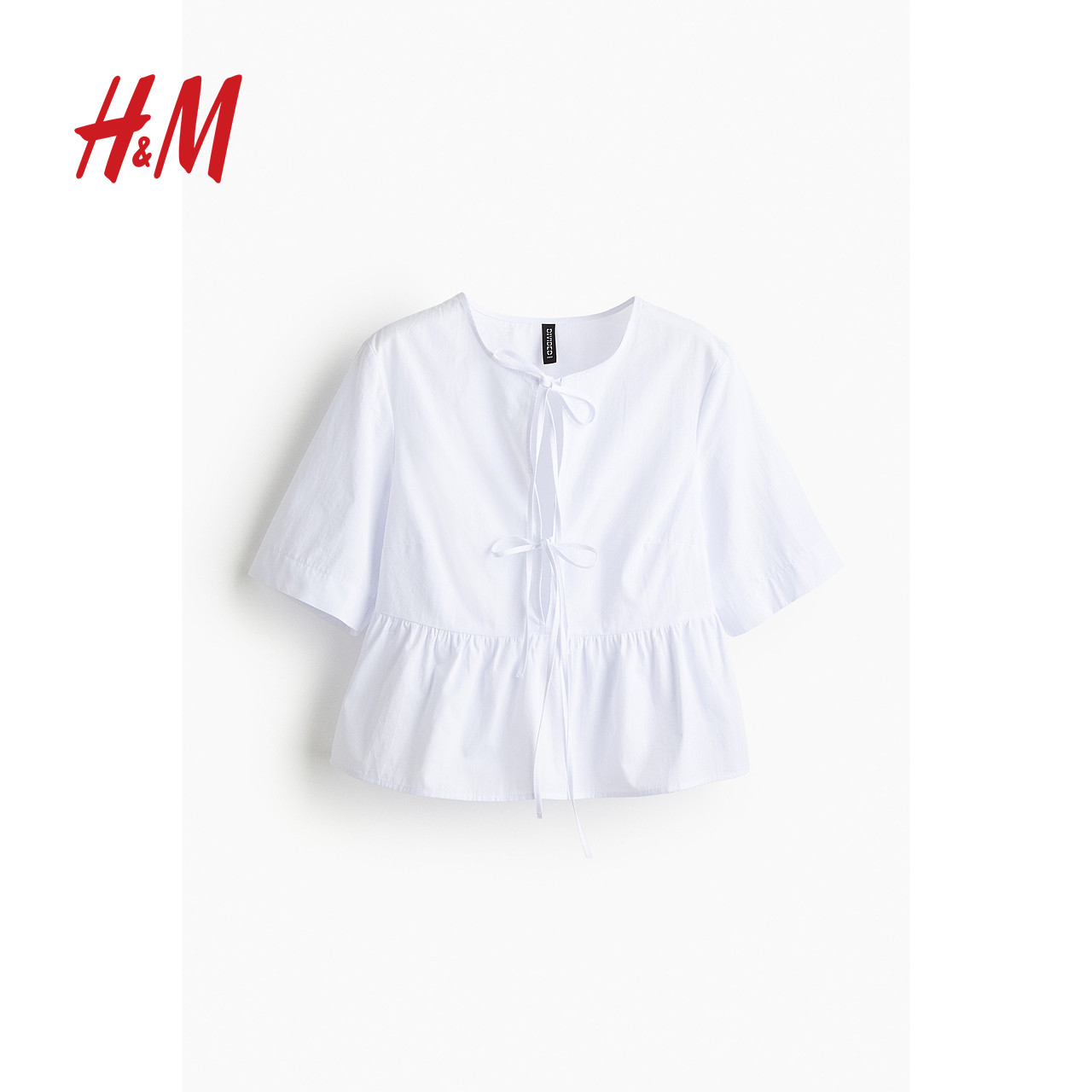 HM春季女装时尚休闲正面系带府绸上衣1202833