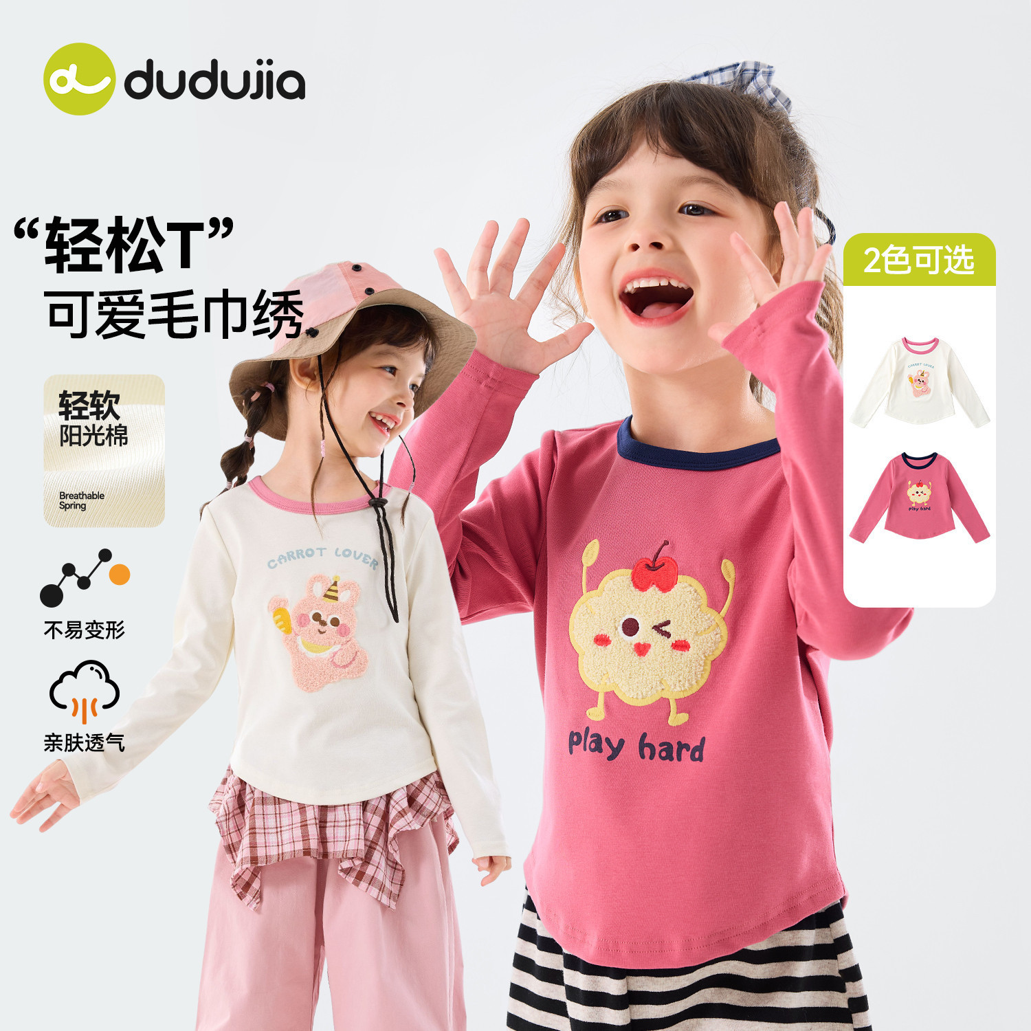 嘟嘟家女童T恤春装儿童多巴胺上衣春秋宝宝衣服卡通毛巾绣童装t恤