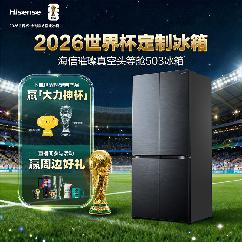 海信璀璨真空头等舱503冰箱十字双开门零嵌入【世界杯定制冰箱】