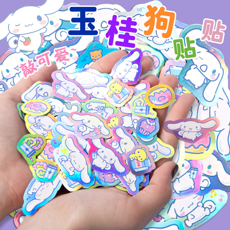 三丽鸥玉贵狗周边系列的贴纸表情包防水立体镭射咕卡迷你小贴纸贴画儿童女孩可爱卡通手机壳库洛米玉桂狗手帐