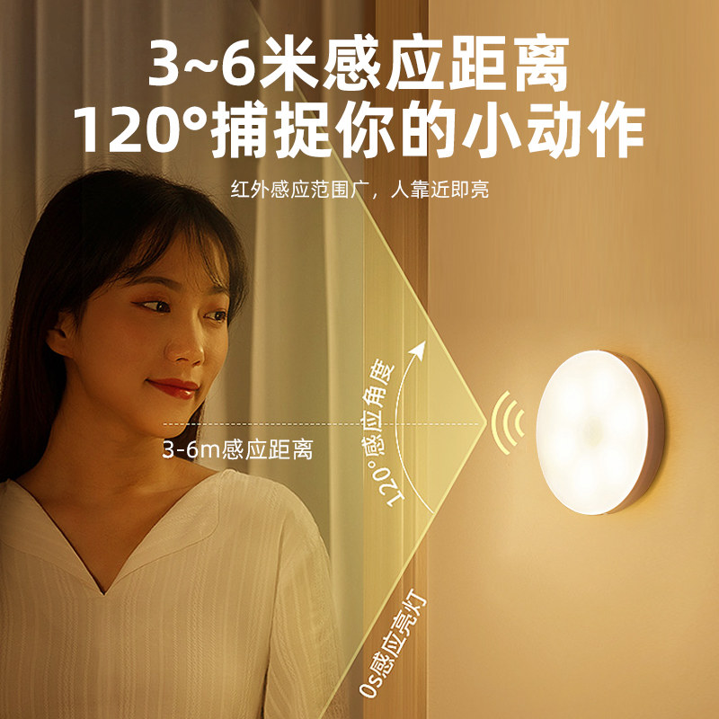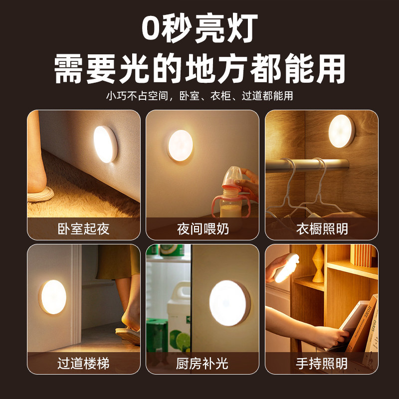 人体自动感应灯小夜灯卧室床头充电人来即亮厕所楼梯夜灯睡眠夜间