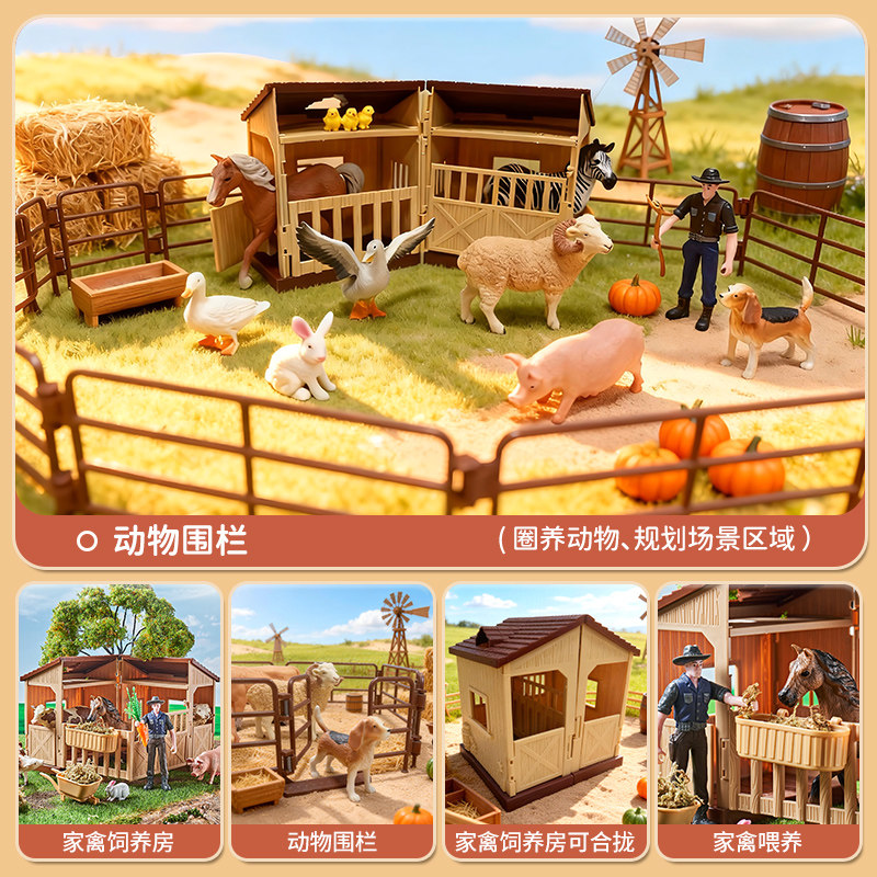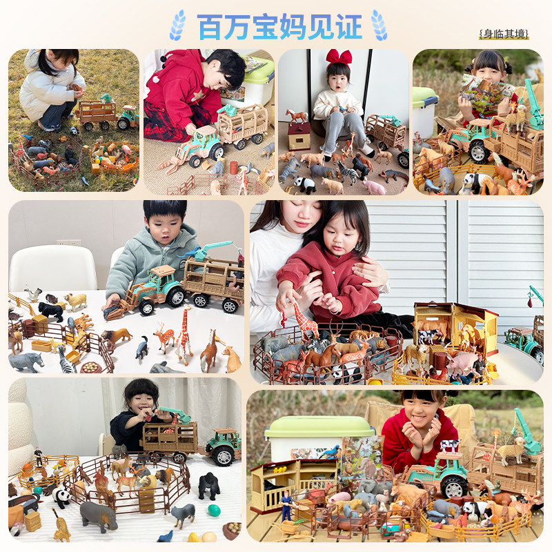 纽仿真动物模型玩具儿童积木农场早教认知家禽益智玩具生日礼物