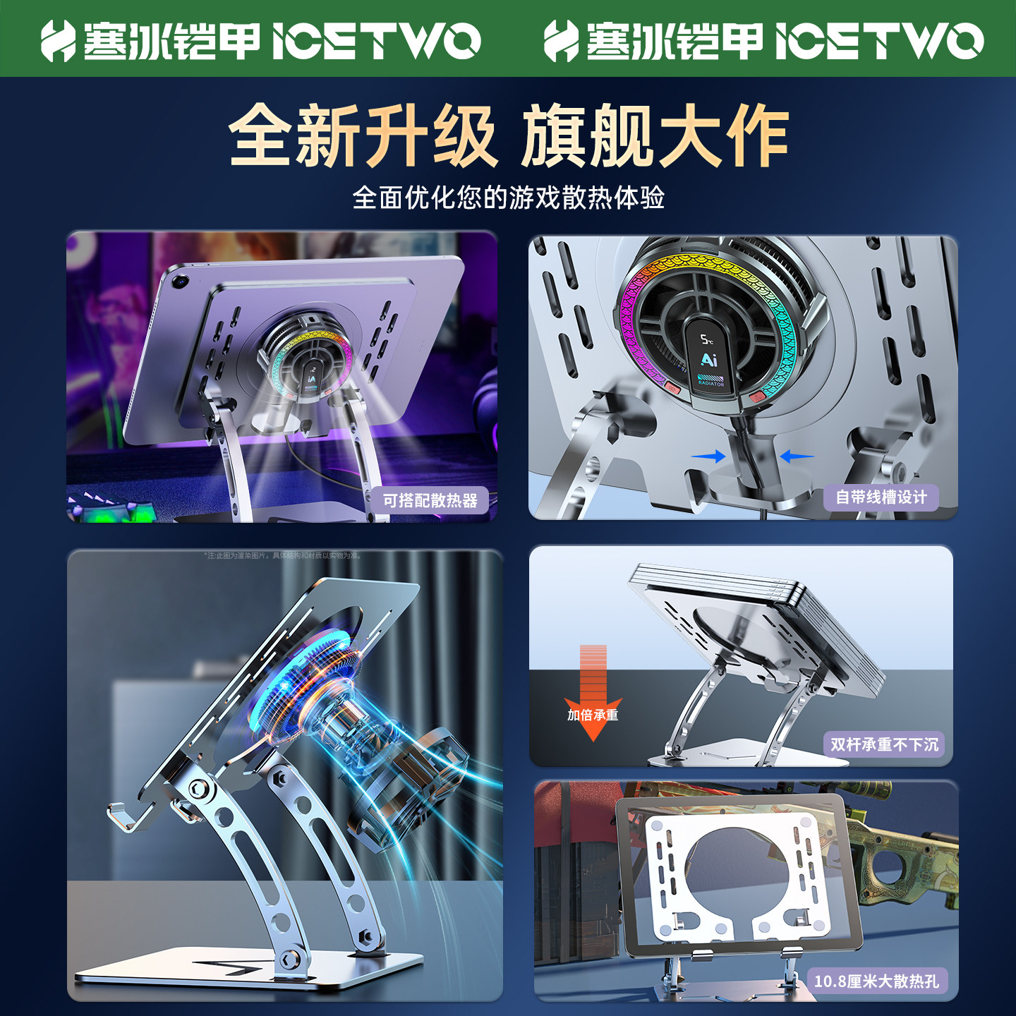 平板支架吃鸡专用支撑架半导体制冷散热器游戏风扇托架电竞金属电脑一体欣卡优陀螺仪寒冰镂空主播架子大带打