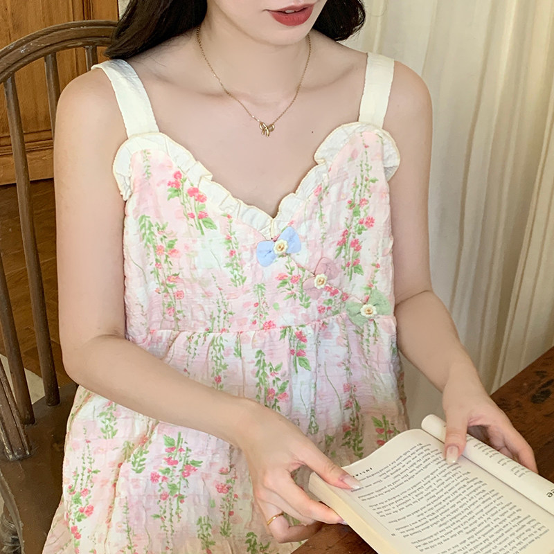 带胸垫吊带睡衣女2026新款夏季棉绸背心甜美可爱女生家居服短裤
