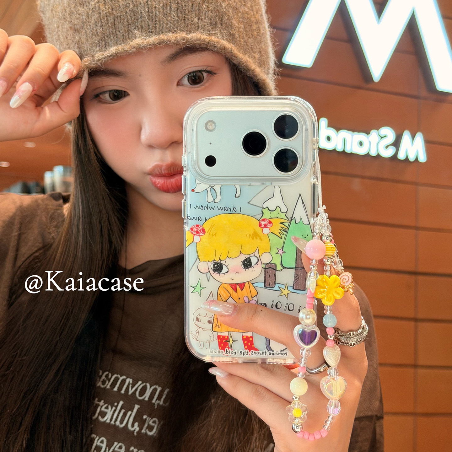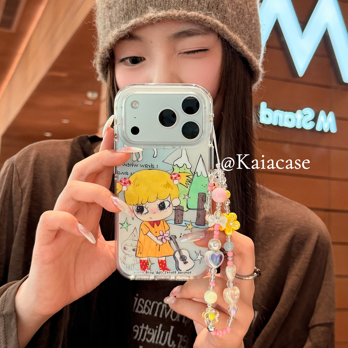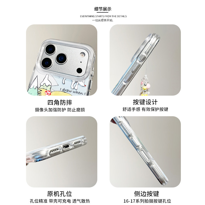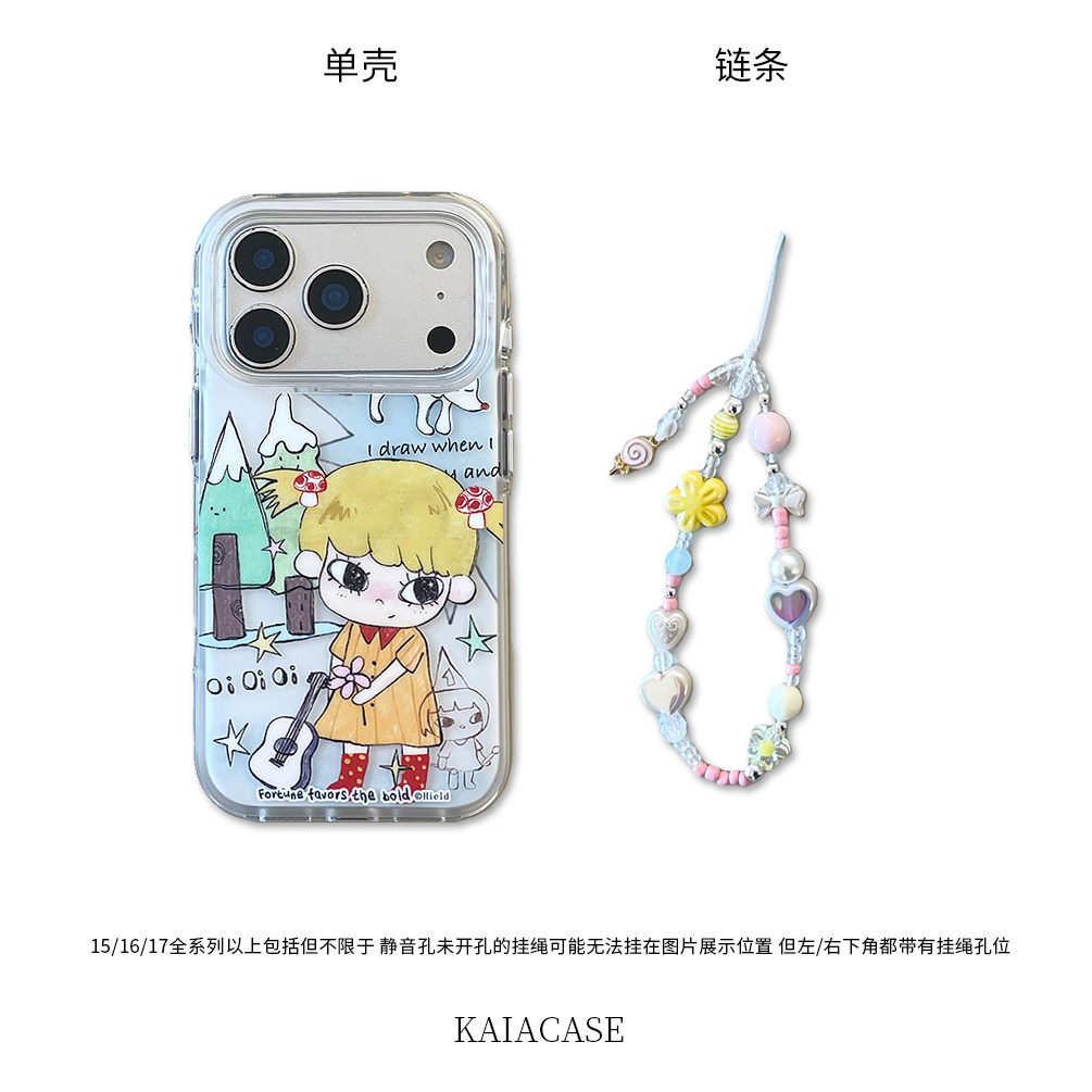 kaia 甜美ins卡通吉他女孩插画适用苹果17promax手机壳iphone16pro新款15女14pro带链条15pro全包防摔手机套