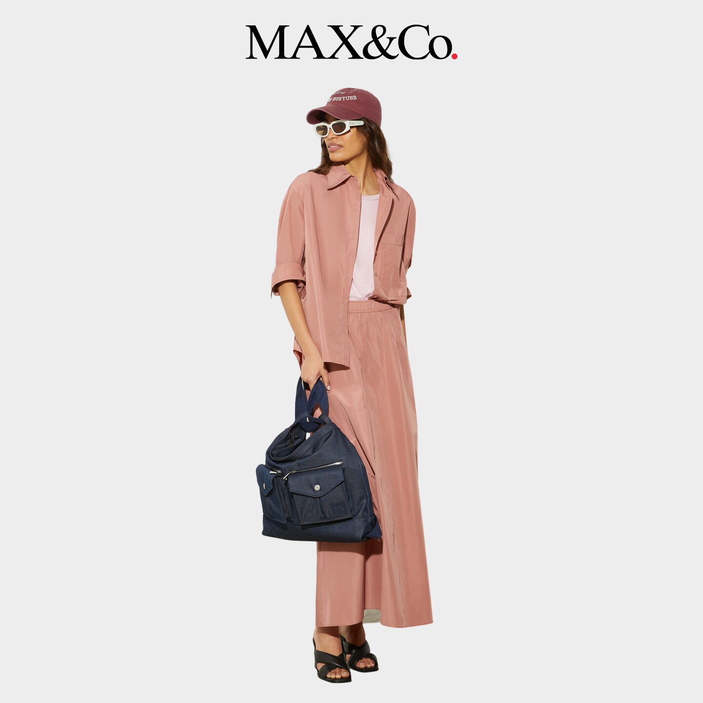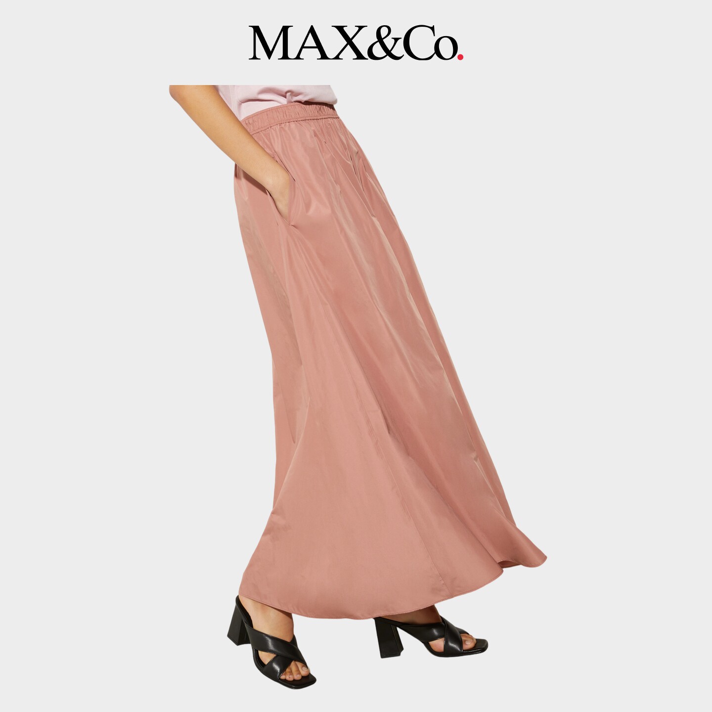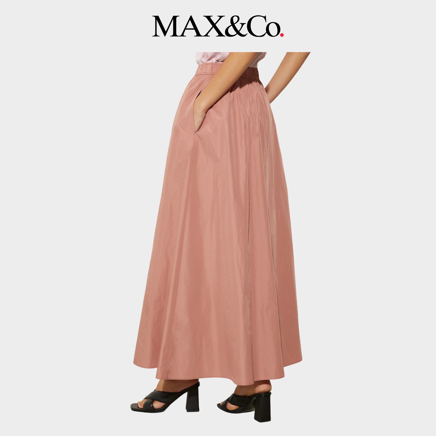MAX&Co.2025春夏纯色百搭塔夫绸长款花冠半身裙6101075402