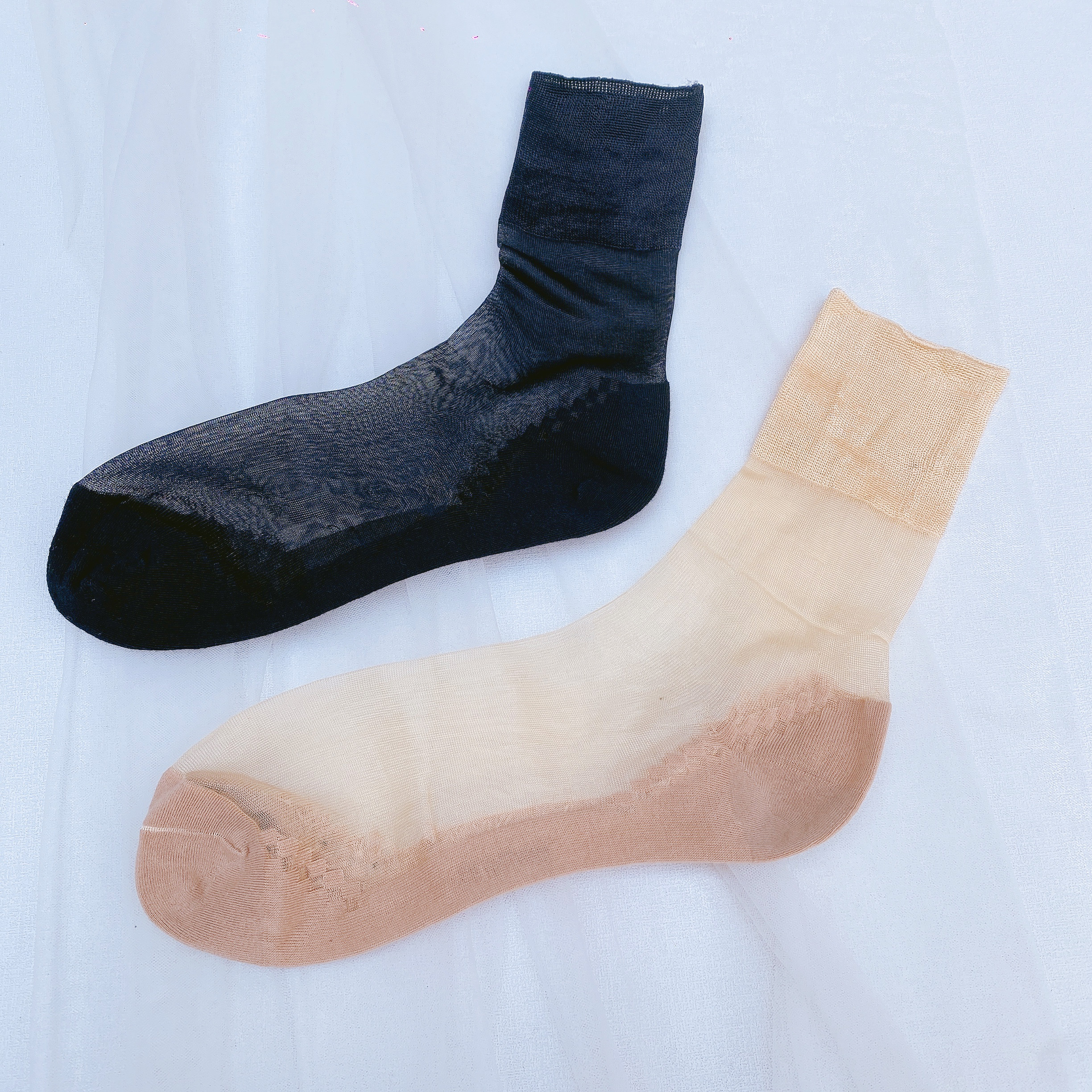 浪莎丝袜女春秋薄款水晶丝短袜耐磨防勾夏季黑肉色棉底袜子中筒袜