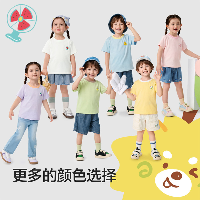 真维斯童装女童短袖t恤2025新款男童夏季纯棉半袖儿童纯色上衣女