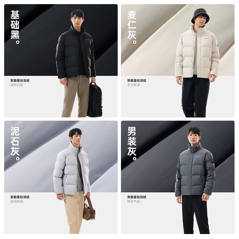 安踏面包羽绒服男款四防短款立领羽绒外套冬季新款保暖鸭绒棉服男