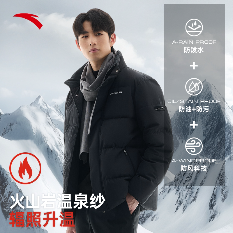 安踏短款四防羽绒服男士冬季立领防风保暖夹克防泼水鸭绒棉服外套