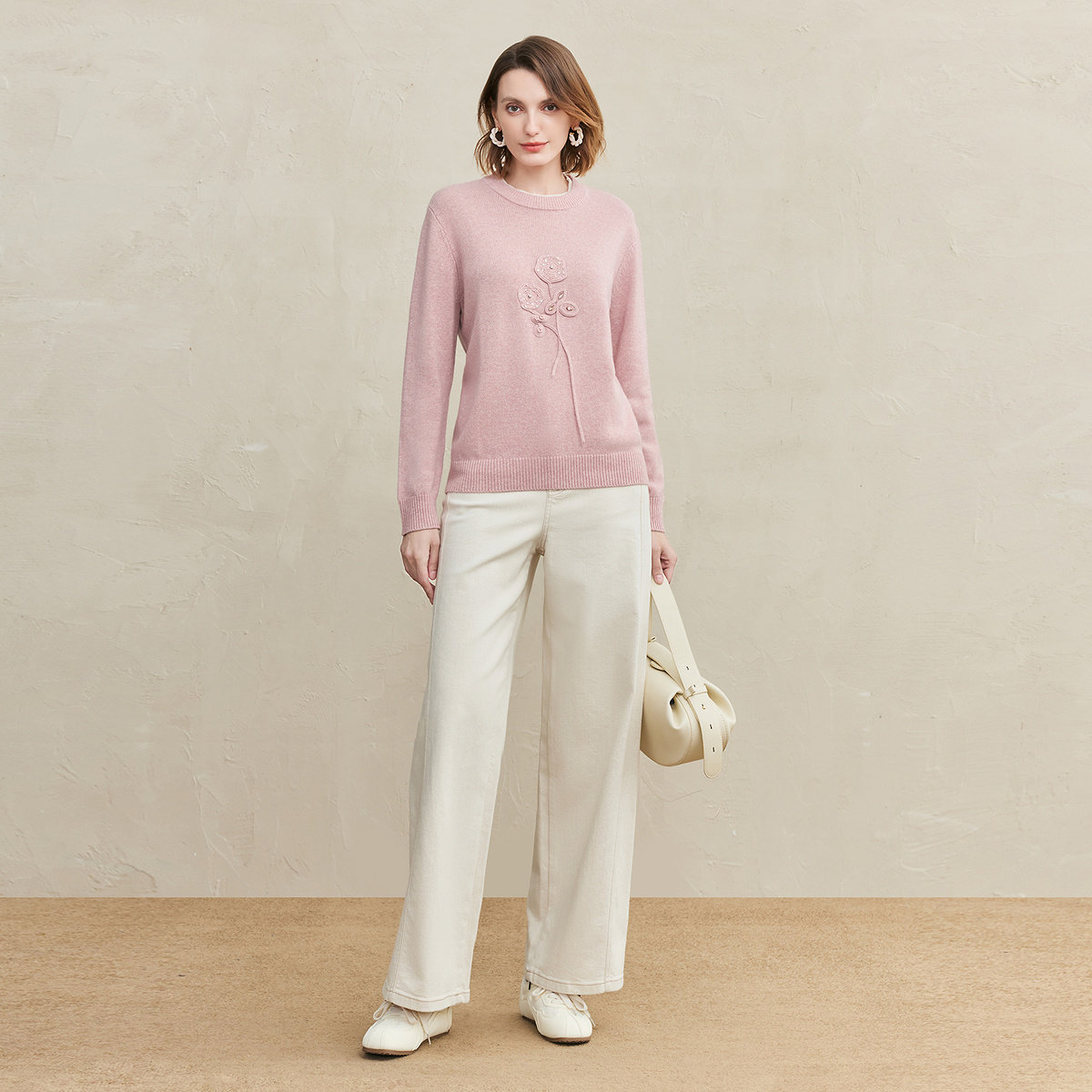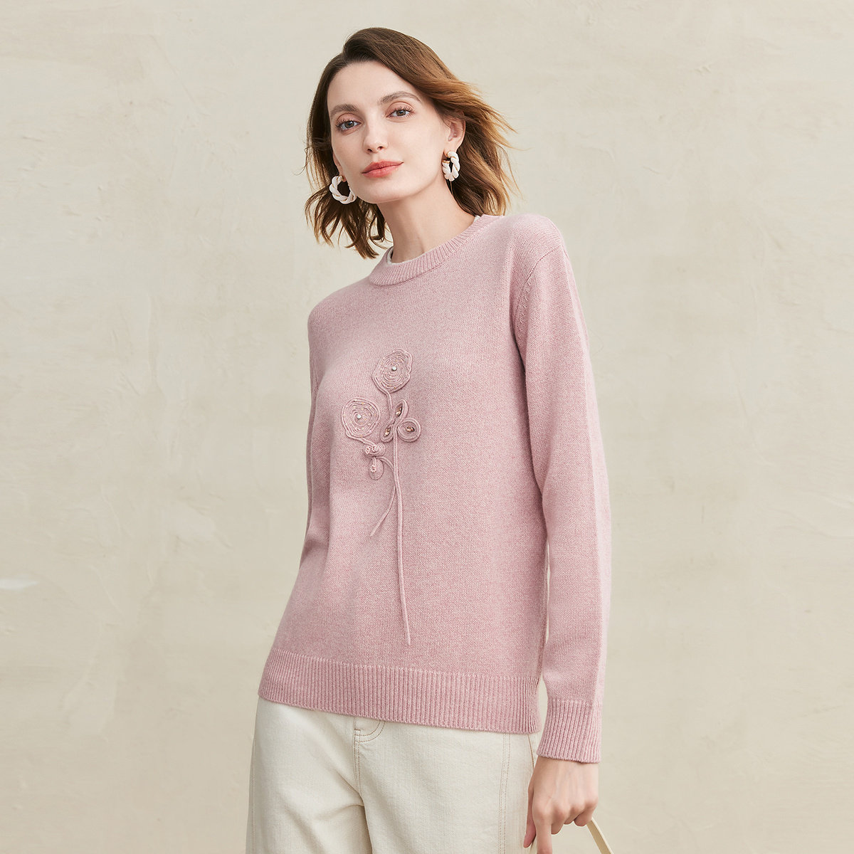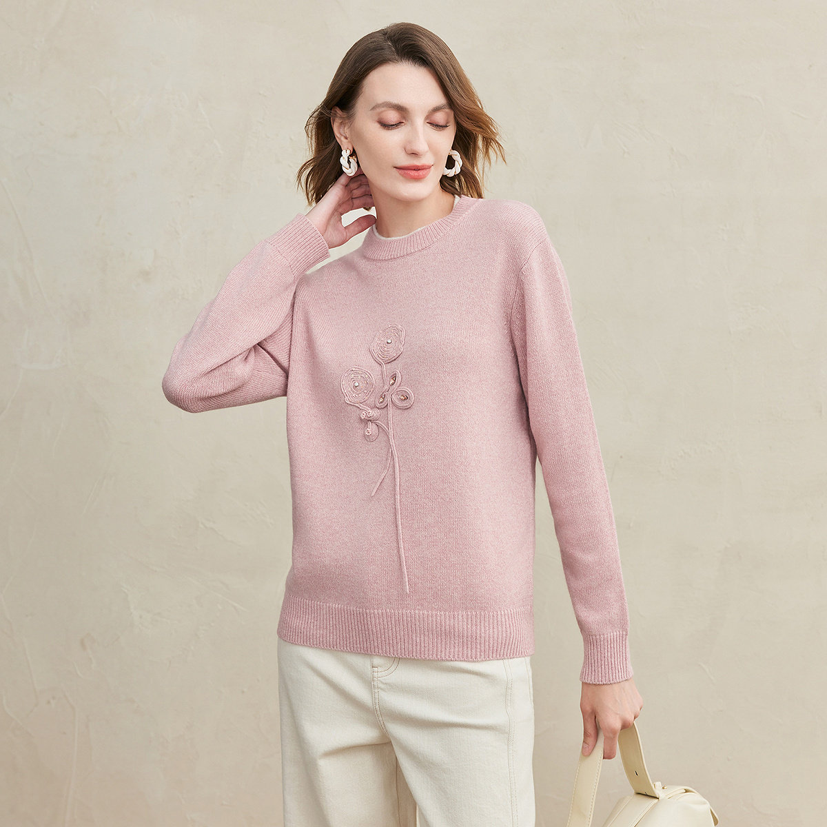 FINITY菲妮迪针织衫2025年冬季新款简约绣花气质通勤羊绒衫上衣女