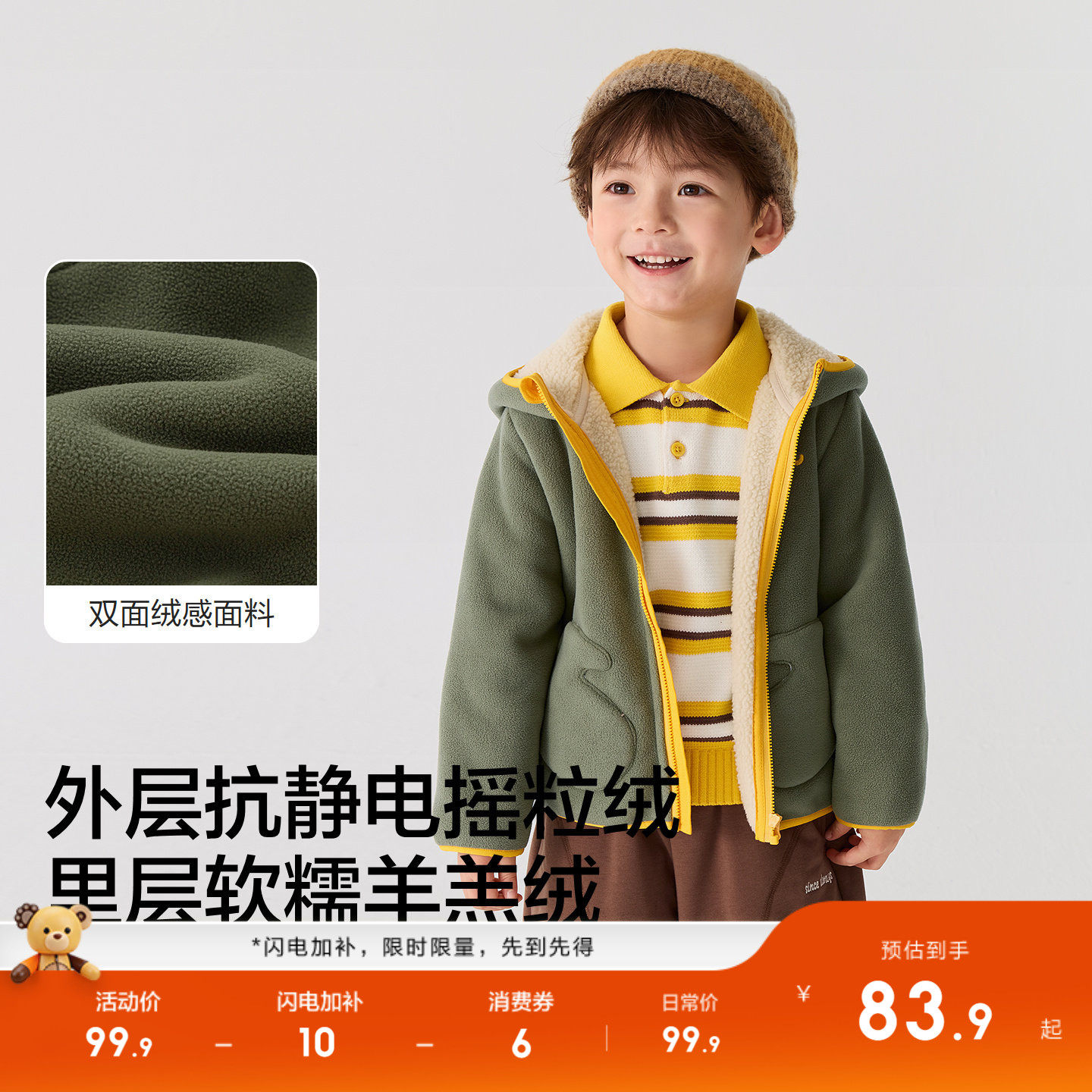 巴拉巴拉童装儿童外套宝宝女童男童新款加绒上衣2025秋冬摇粒绒潮
