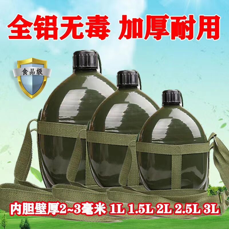 老式水壶铝制背带水壶户外大容量便携学生用运动水壶军训老式水壶