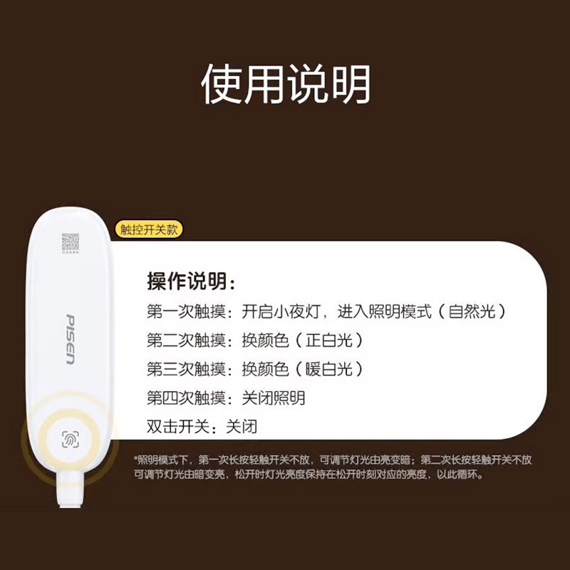 品胜usb小夜灯LED护眼电脑键盘灯触摸开关触控儿童睡眠卧室宿舍学习灯床头婴儿喂奶随身携带懒人专用可爱壁灯