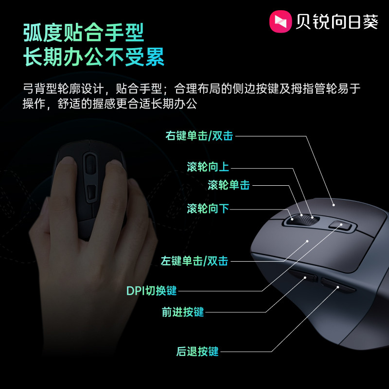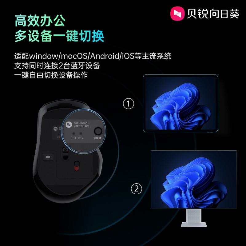 向日葵无线蓝牙鼠标远程办公游戏平板笔记本电脑多设备切换便携