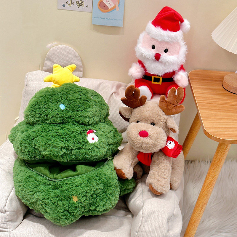 创意圣诞树玩偶毛绒玩具麋鹿公仔圣诞老人抱枕女孩儿童圣诞节礼物