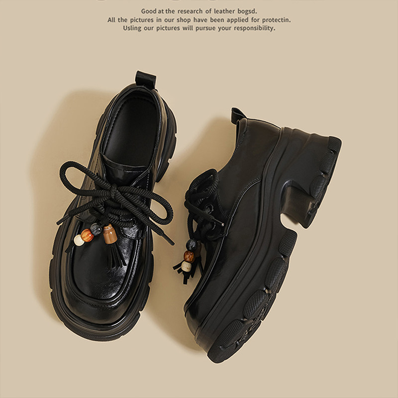 真皮厚底乐福鞋女2025春秋新款百搭学院黑色单鞋系带英伦风小皮鞋