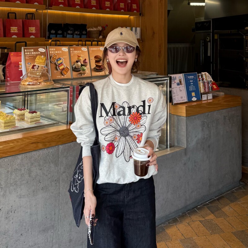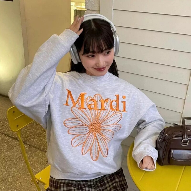 韩国潮牌Mardi卫衣女赵露思同款小雏菊圆领刺绣印花秋冬百搭上衣