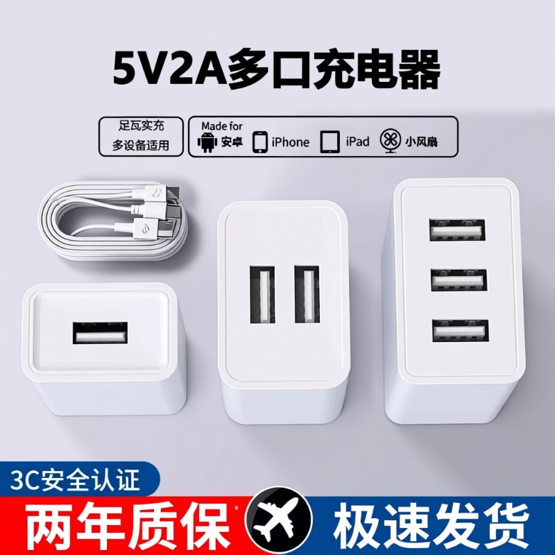5v2a充电器usb插头单口双口三口多口充头多设备通用充电器
