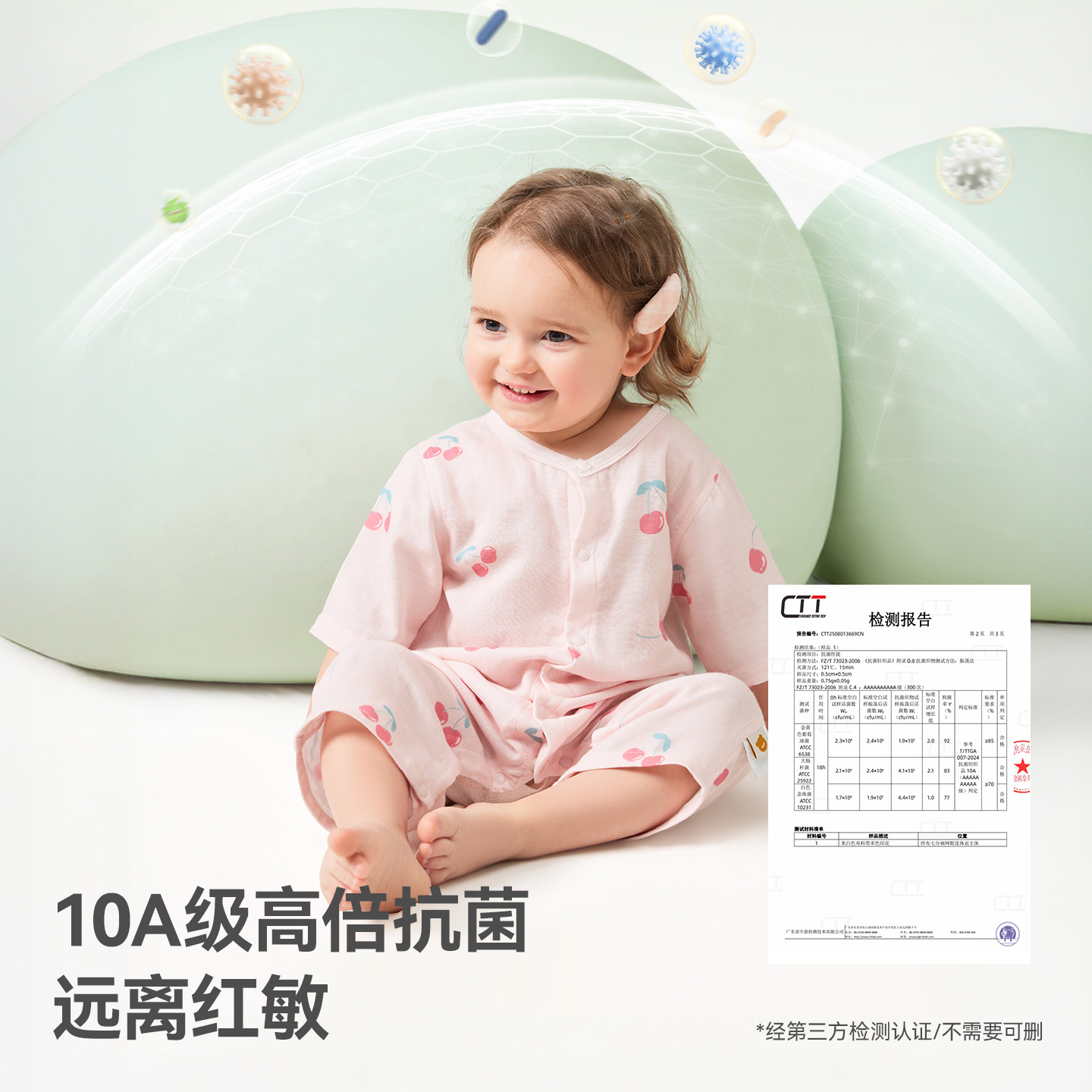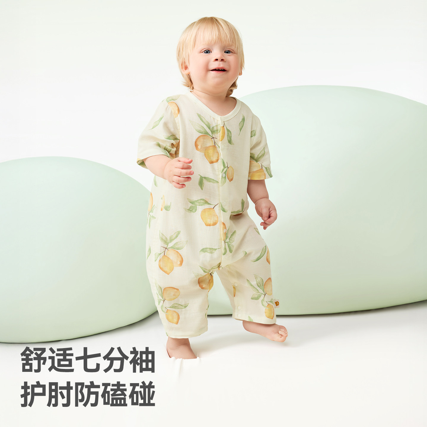 贝肽斯婴儿衣服夏季薄款连体衣宝宝后背网孔透气七分袖空调服睡衣