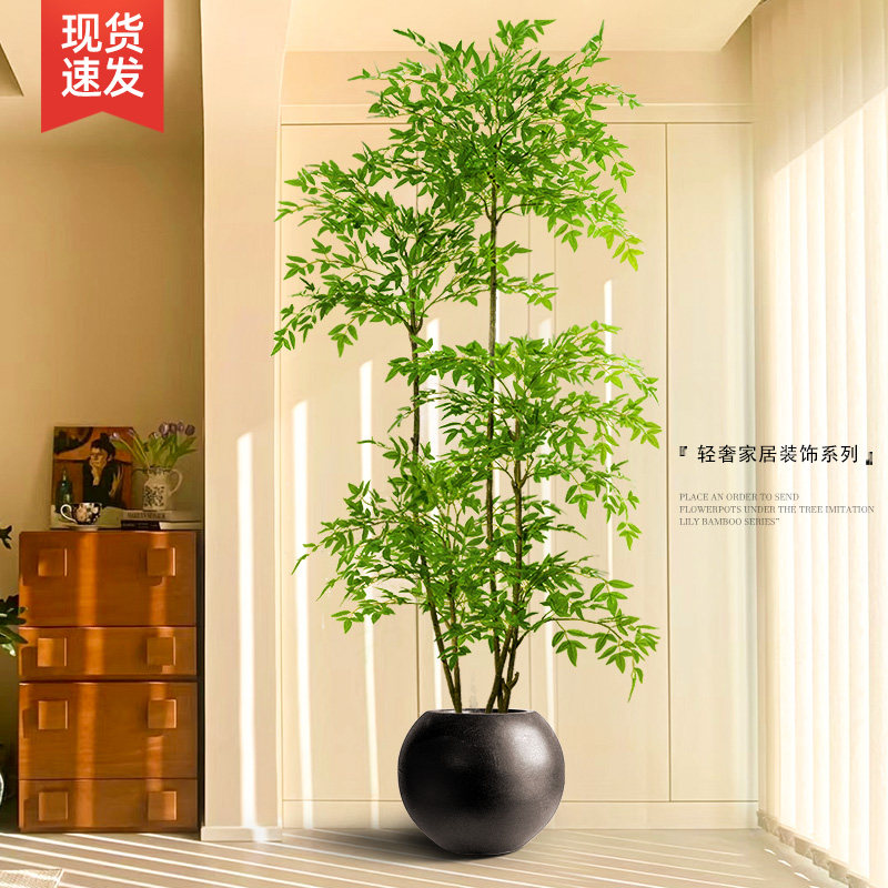 南天竹仿真植物假绿植装饰室内落地盆栽高级感客厅轻奢假花树氛围