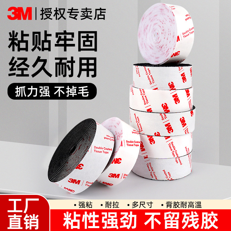 3m魔术贴带背胶双面胶高粘度窗帘粘贴条勾毛面纱窗门帘强力自粘子母贴衣服贴固定后备箱脚垫地毯不留胶