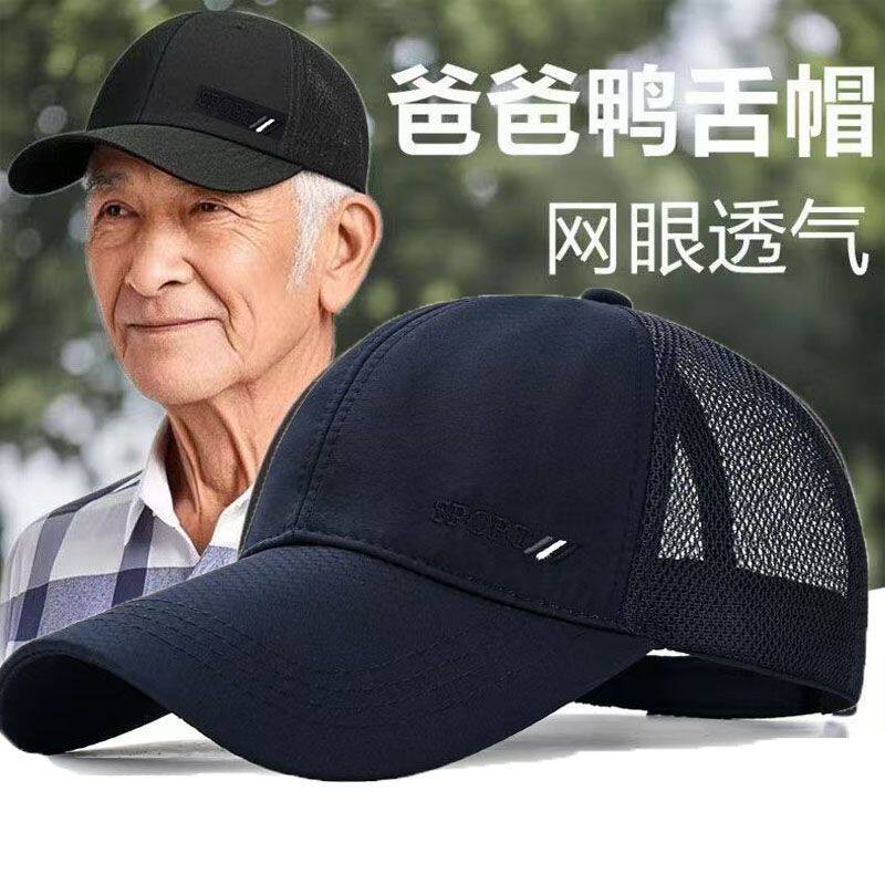 夏季帽子男士中老年鸭舌帽褪色棒球帽大头遮阳防晒透气户外网眼