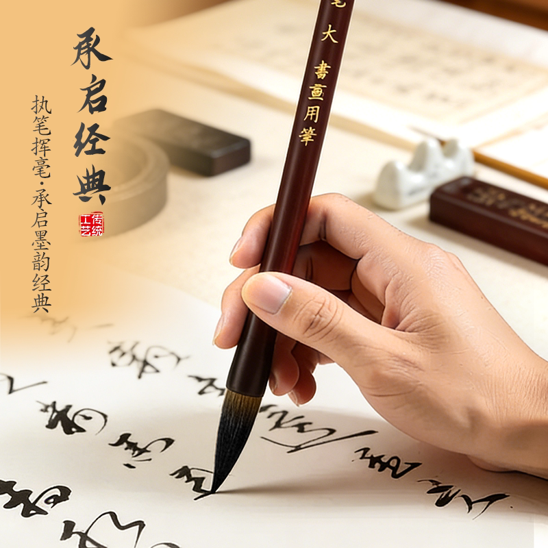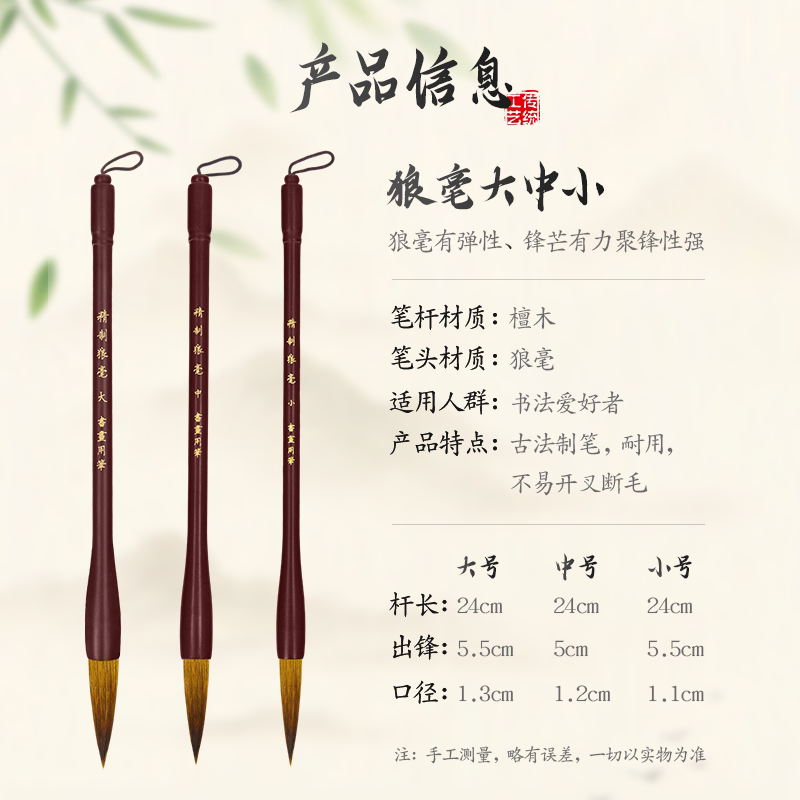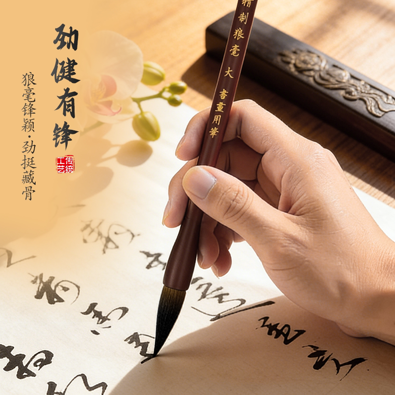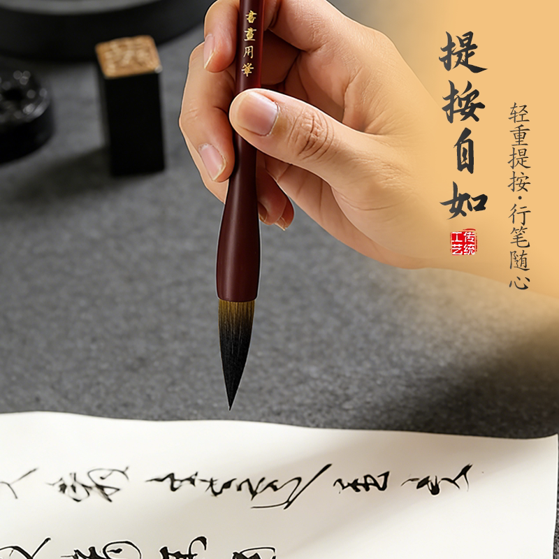 Hernidex好而得纯狼毫毛笔大师手造初学者入门成人小学生国画书法练字专用楷行草书大中小号精品湖笔专业级