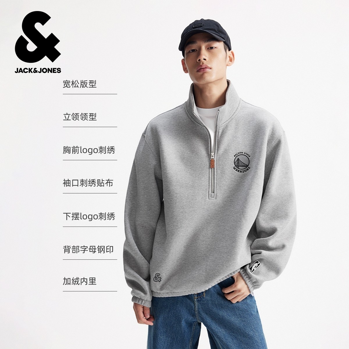 杰克琼斯NBA联名2025年秋季新款男装卫衣宽松立领长袖时尚上衣