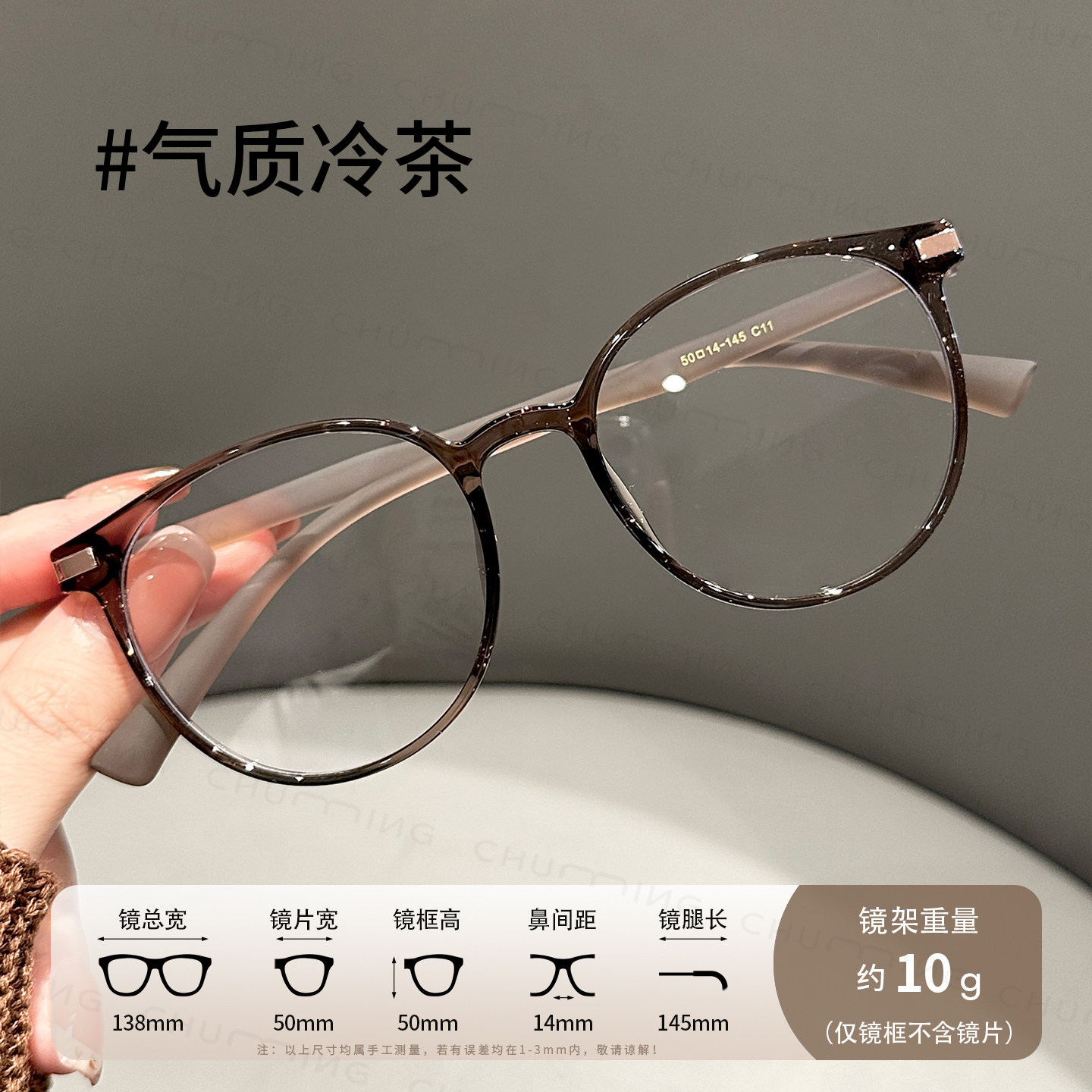 目戏冷茶色眼镜近视女专业可配度数可选防蓝光镜片眼镜框镜架5018