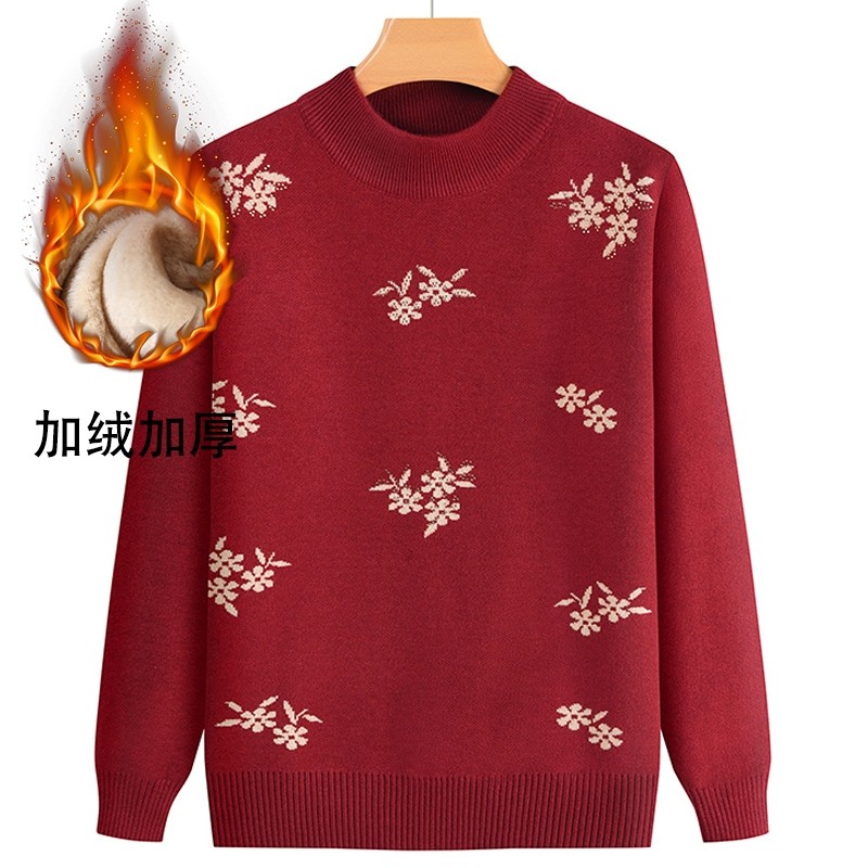 中老年高端纤绒妈妈装女装针织衫女加厚毛衣冬中年打底衫上衣奶奶