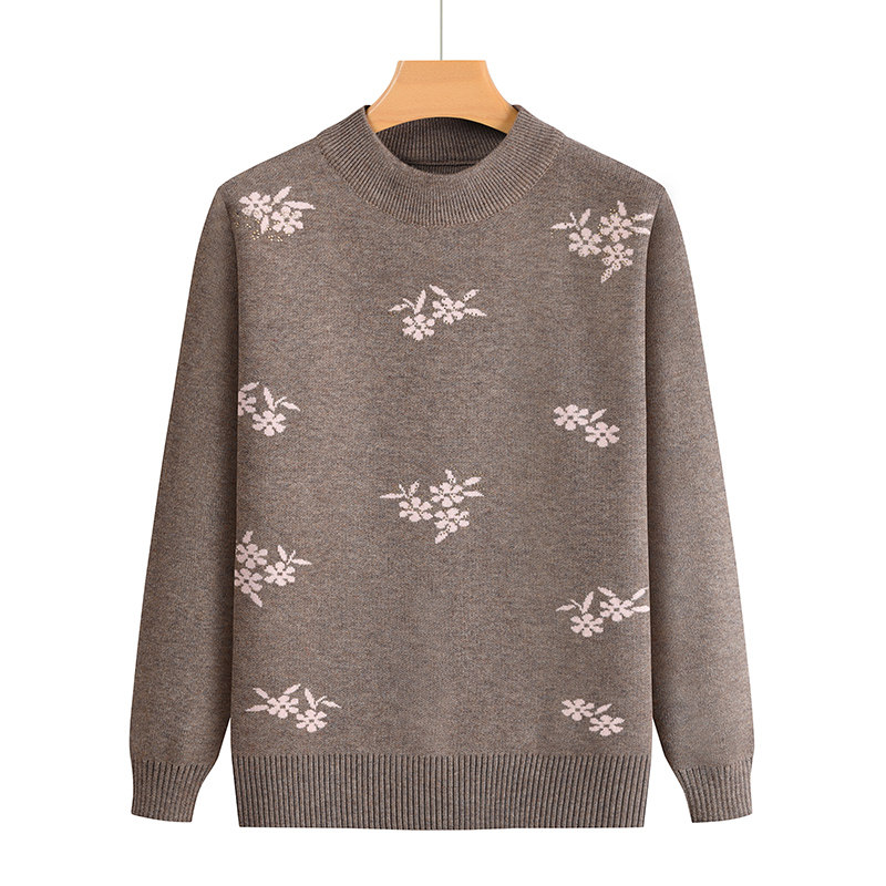 2025新款碎花针织衫上衣中老年女装春秋翻领打底衫妈妈秋装薄毛衣
