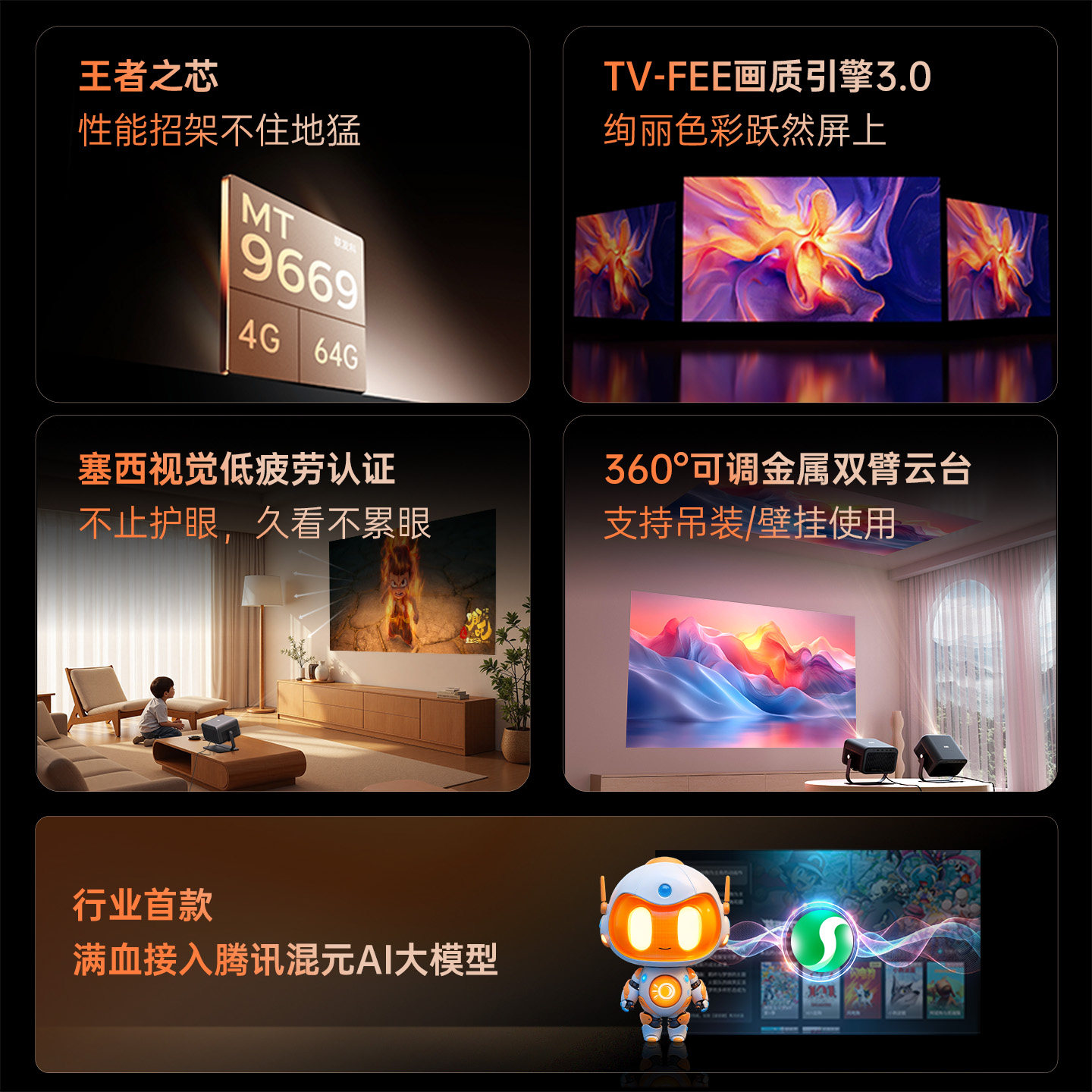 【到手不高于1758元】大眼橙C3 Ultra投影仪超高清家用放映机1080P家庭影院卧室无幕布投屏墙高刷120HZ影院