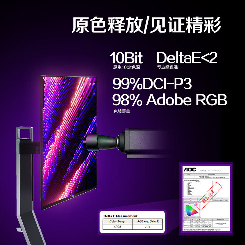 QD-OLED屏|240Hz高刷|0.03ms响应|原生10Bit