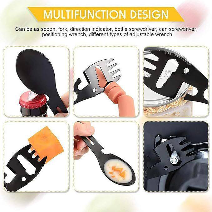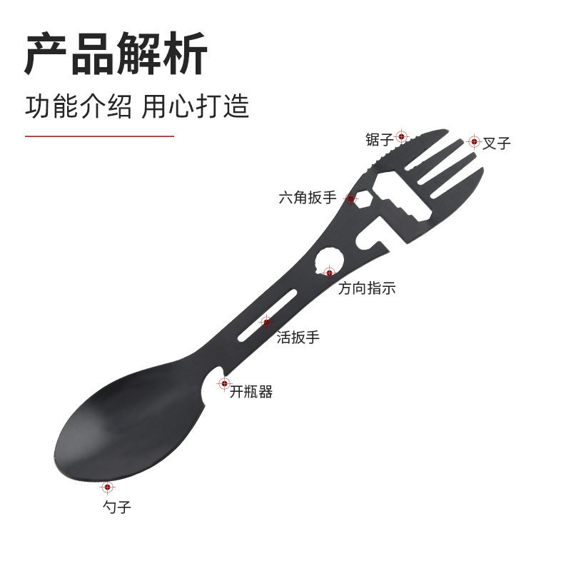 新款跨境10合一多功能户外野营生存叉勺厨房多功能扳手开瓶器勺子